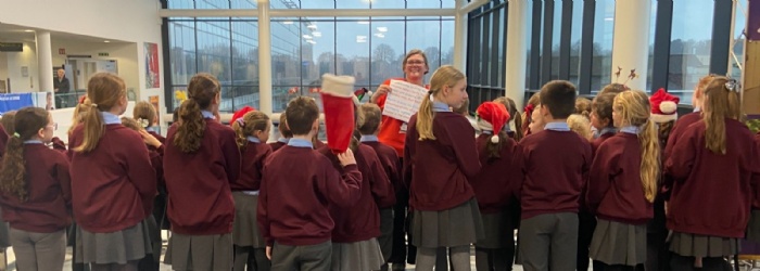 Our school choir has been very busy this Christmas! Not only have they taken part in a Christmas carol service at St Giles' Church with the Delian singers, but they also had a trip to our local hospital. They sang beautifully and certainly made a lot of people having to visit the hospital smile. This was part of the NHS charity and so many visitors were donating whilst listening to our choir in the buckets around the foyer.